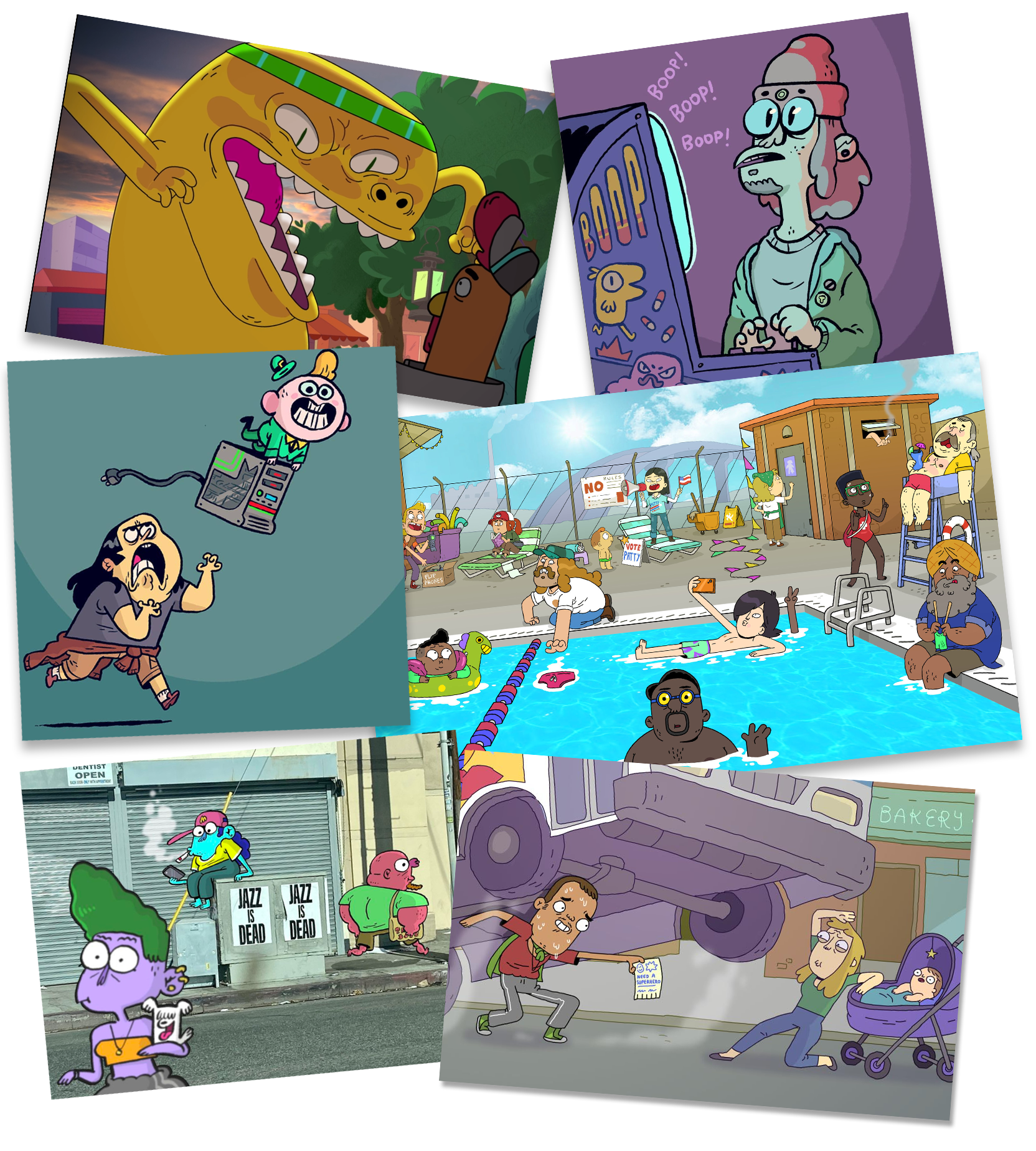 These clients include Amazon Studios, Glitch, Sony Pictures Animation, Playstation Productions, Cartoon Network, 20th Century, Nickelodeon, eOne, Nelvana, Disney Jr and Spinmaster, to name a few (OK, more than a few). I was also under an overall deal with the good folks at Disney TVA, where I worked on several different series projects of my own.